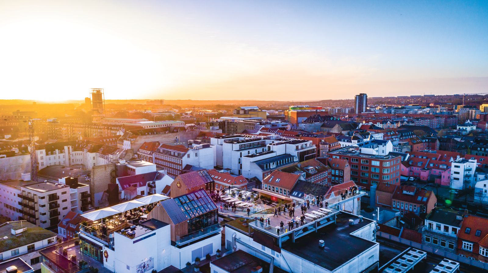 En solbeskinnet eftermiddag på Salling Rooftop, som åbnede i august 2017 med panoramaudsigt over hele byen. De besøgende kan også udfordre sig selv ved at gå ud på den nervepirrende Salling SKYWAK – en glasplade 27 meter over Strøget. Med over 500.000 besøgende de første tre måneder har tagterrassen kurs mod at blive en af Jyllands mest besøgte turistattraktioner.